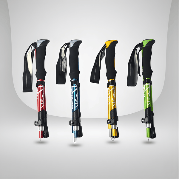 - Les bâtons télescopiques glissent et se bloquent par section — parfaits pour un usage polyvalent et des réglages fréquents.