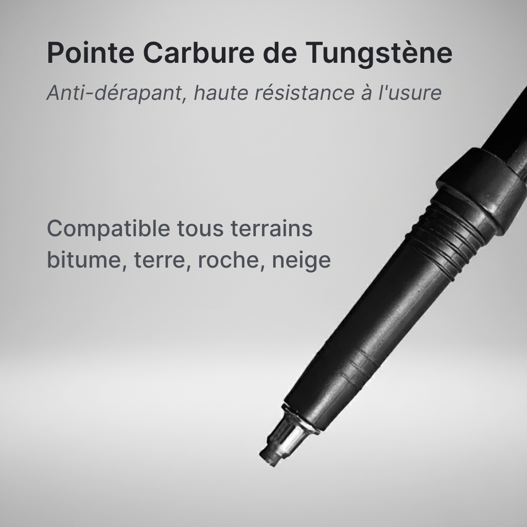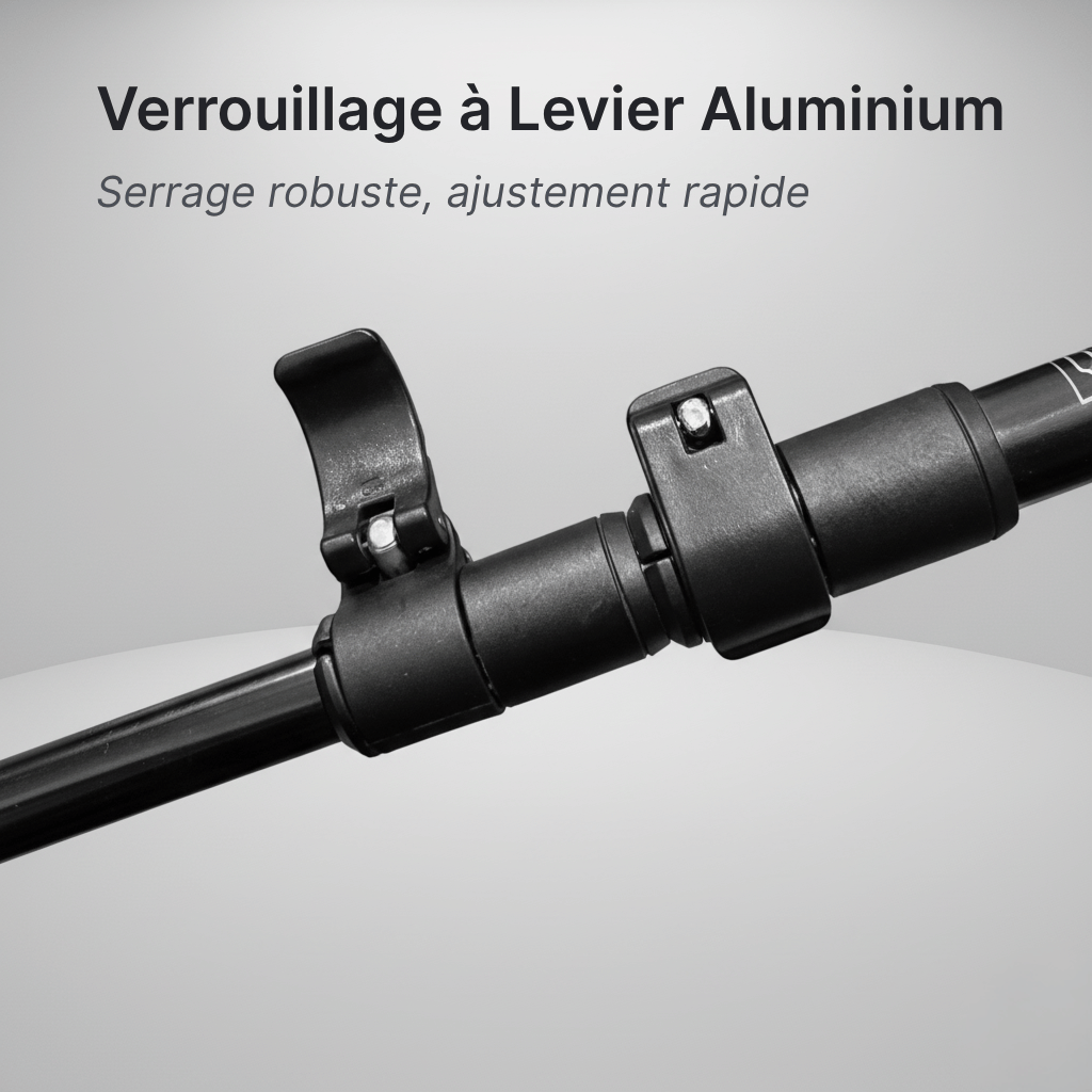 • Les bâtons télescopiques glissent et se bloquent par section — parfaits pour un usage polyvalent et des réglages fréquents.